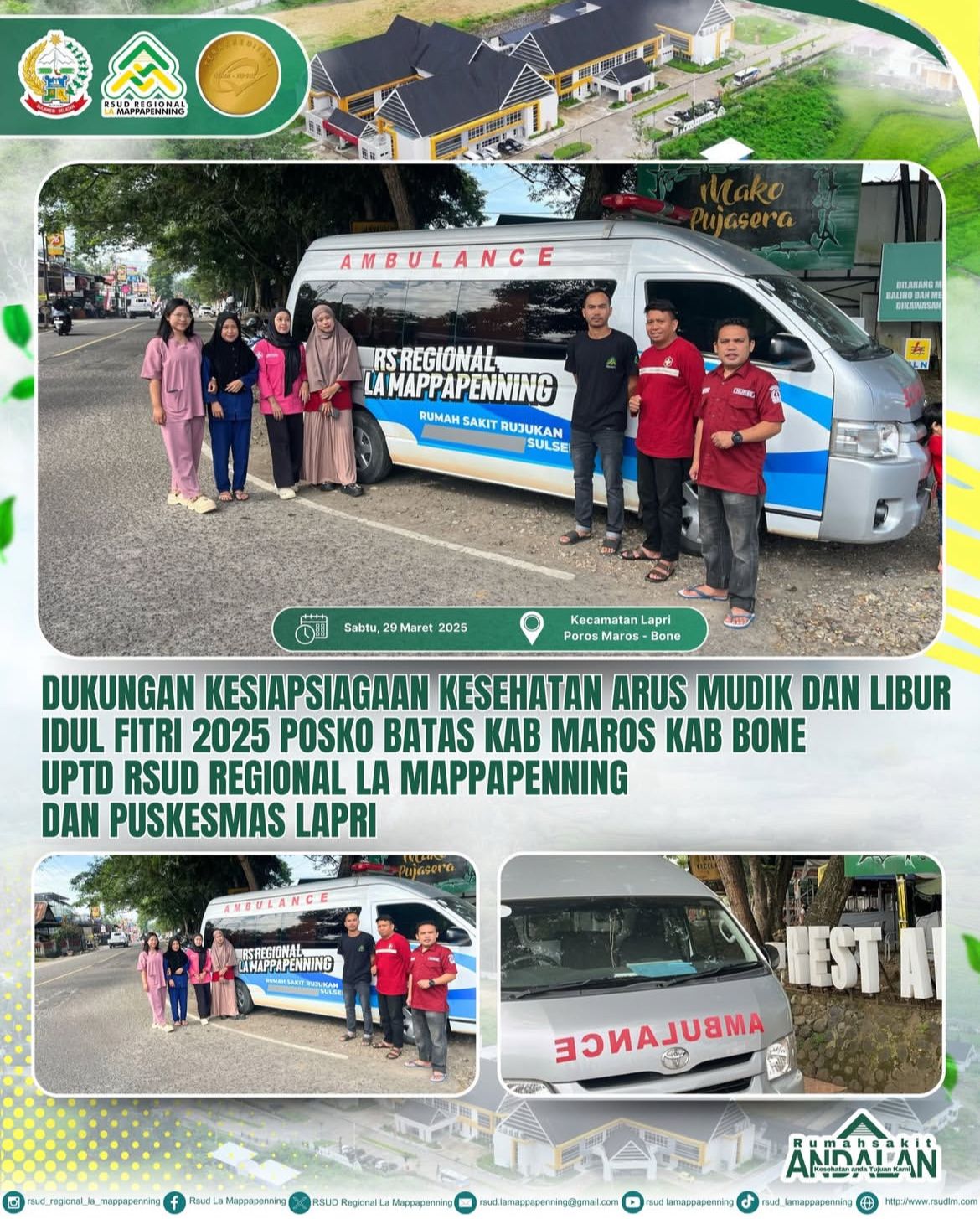 Hari Enam RSUD Regional La Mappapenning bersama Puskesmas Lapri siap siaga di Posko Kesehatan Batas Kab. Maros – Kab. Bone untuk mendukung kesehatan pemudik. Senin, 31 Maret 2025