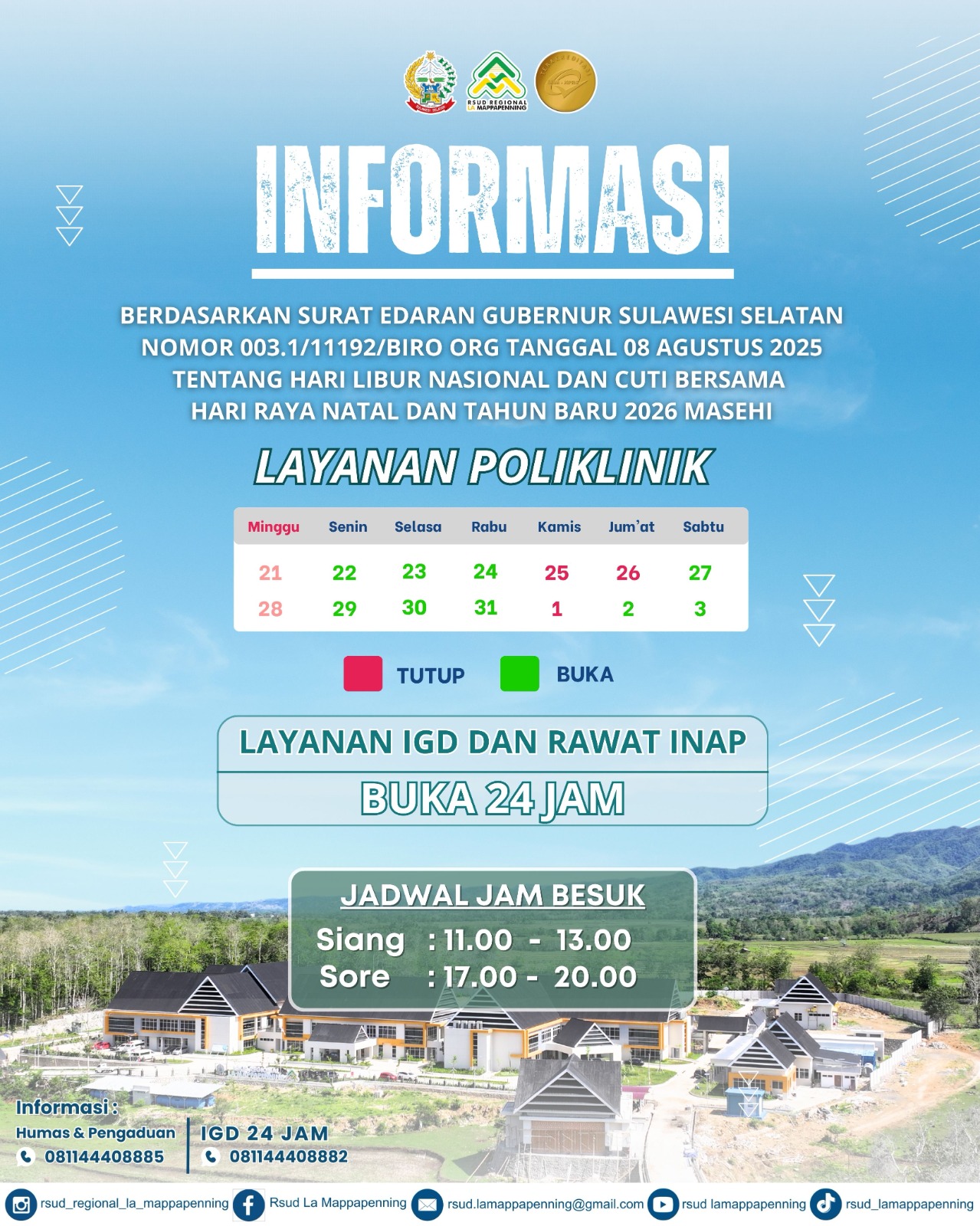 Jadwal Poli Tutup 25,26 Desember dan 01 Januari 2026... |