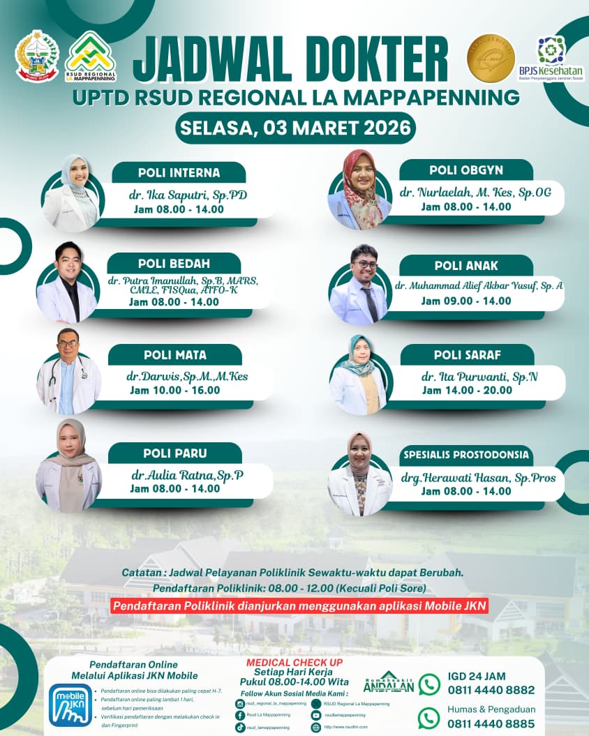 Jadwal Poli Selasa 03 Maret 2026... |