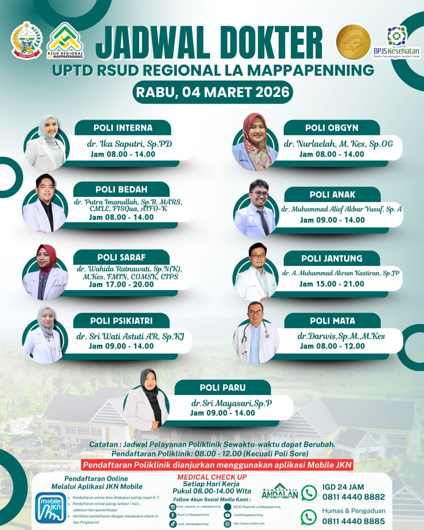 Jadwal Poli Rabu 04 Maret 2026... |