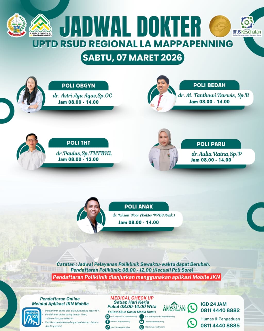Jadwal Poli Sabtu 07 Maret 2026... |