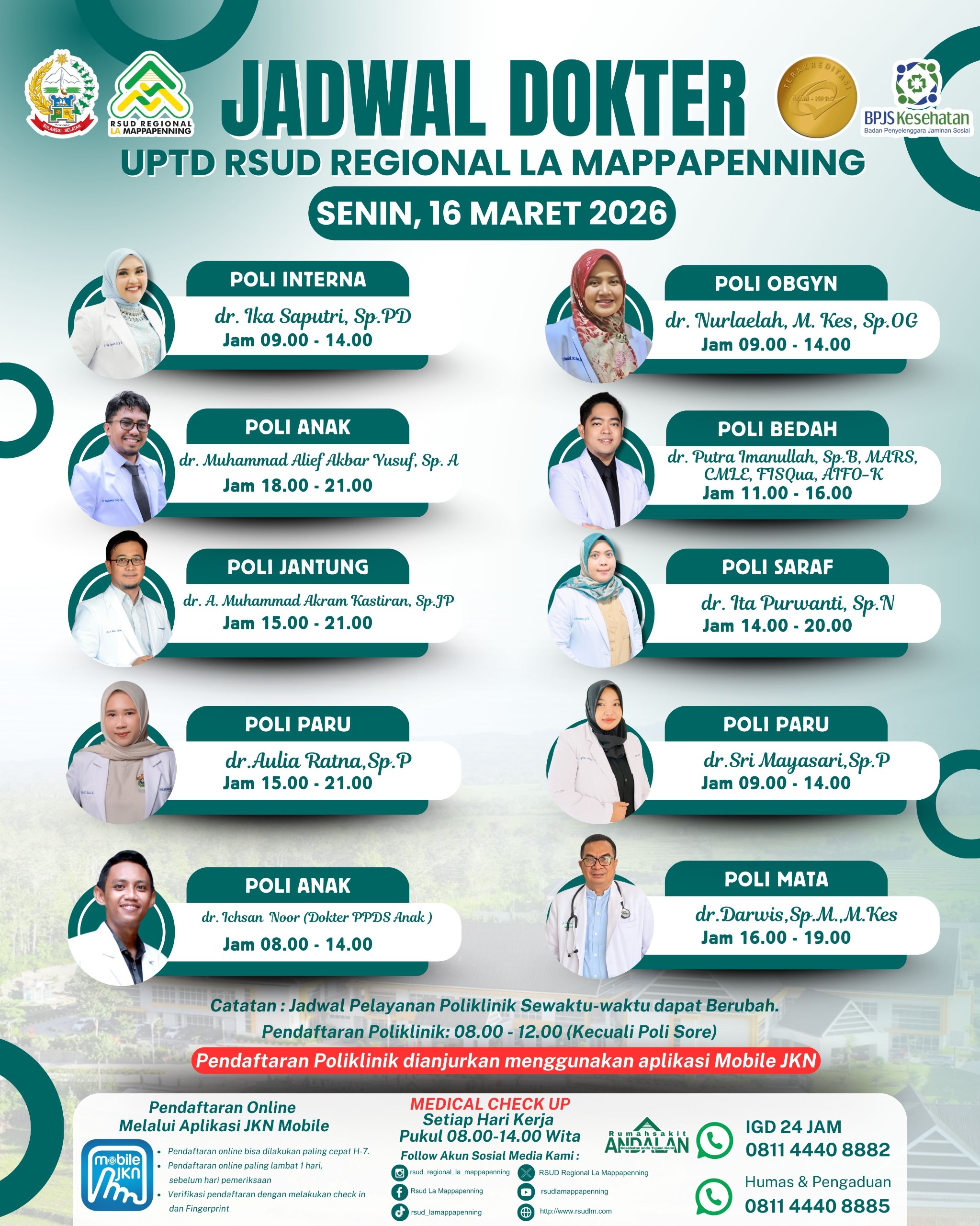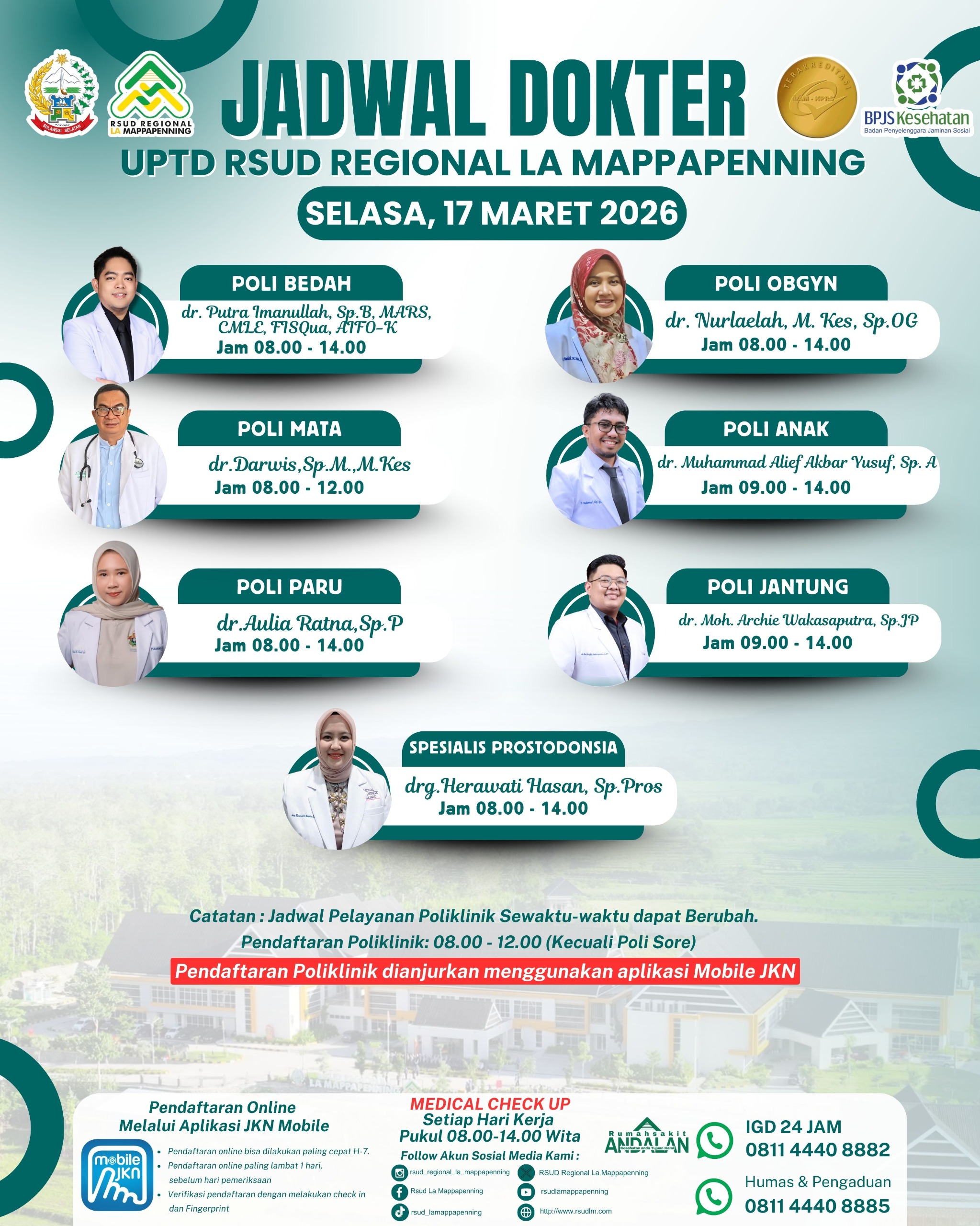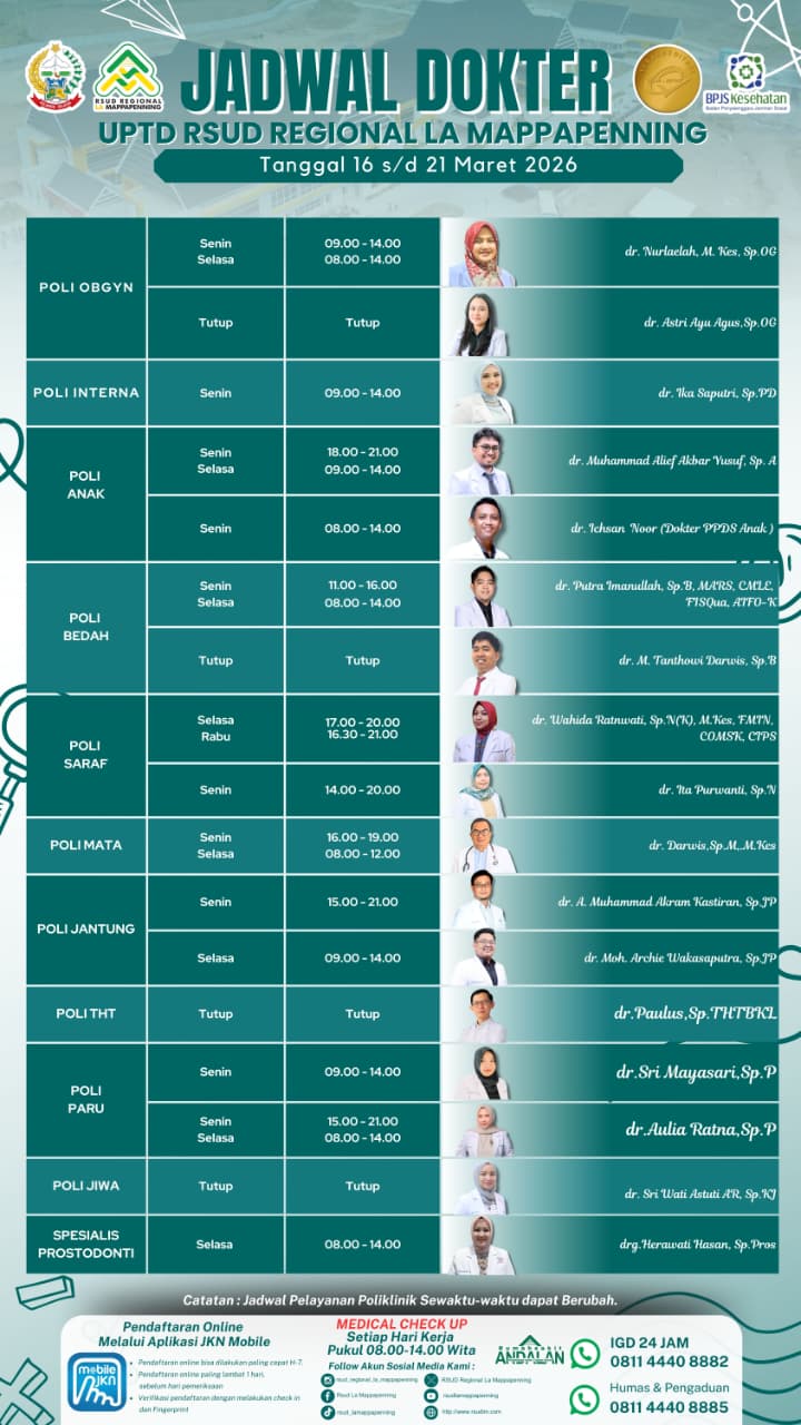 Jadwal Poli Selasa 17 Maret 2026... |