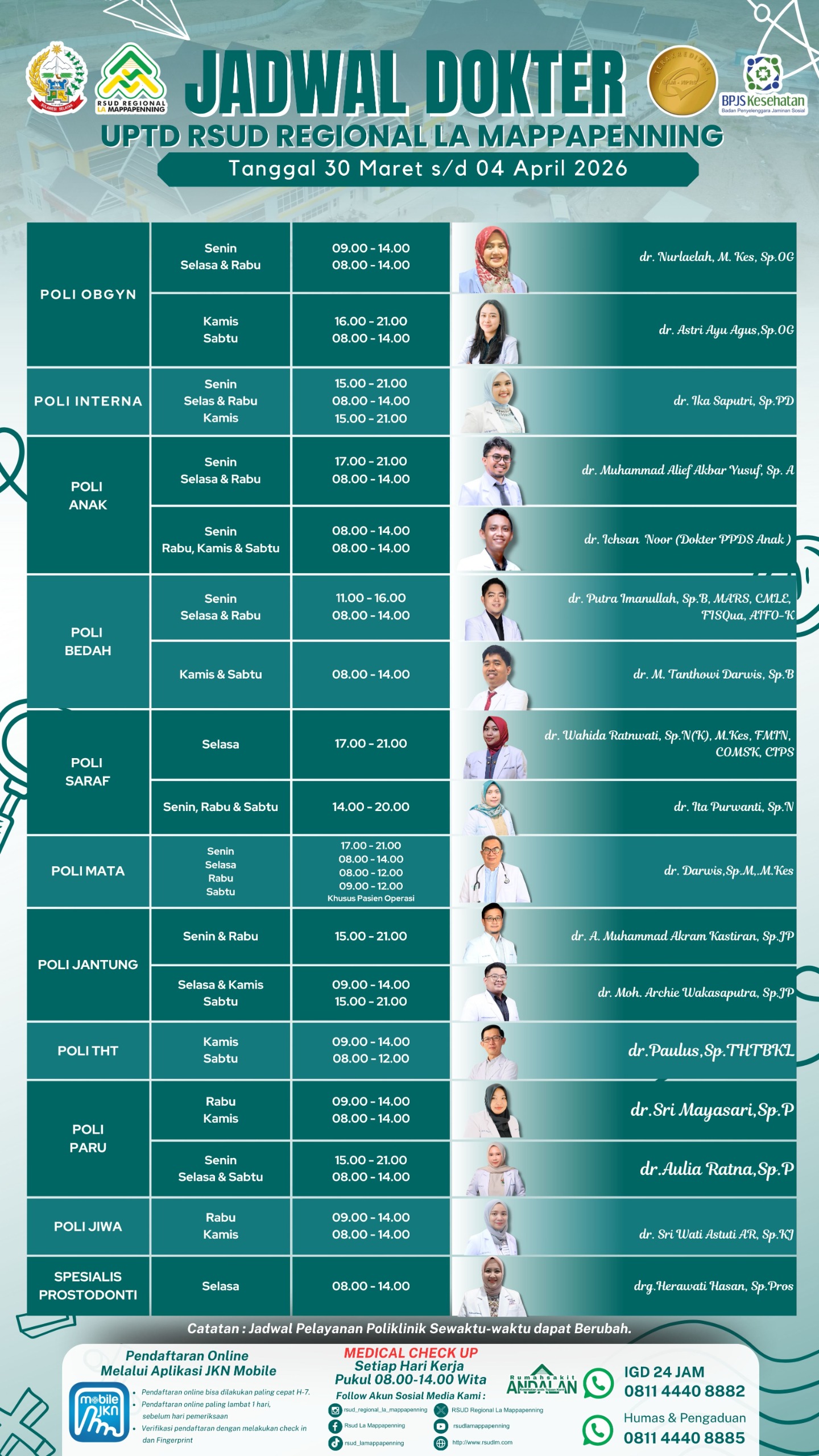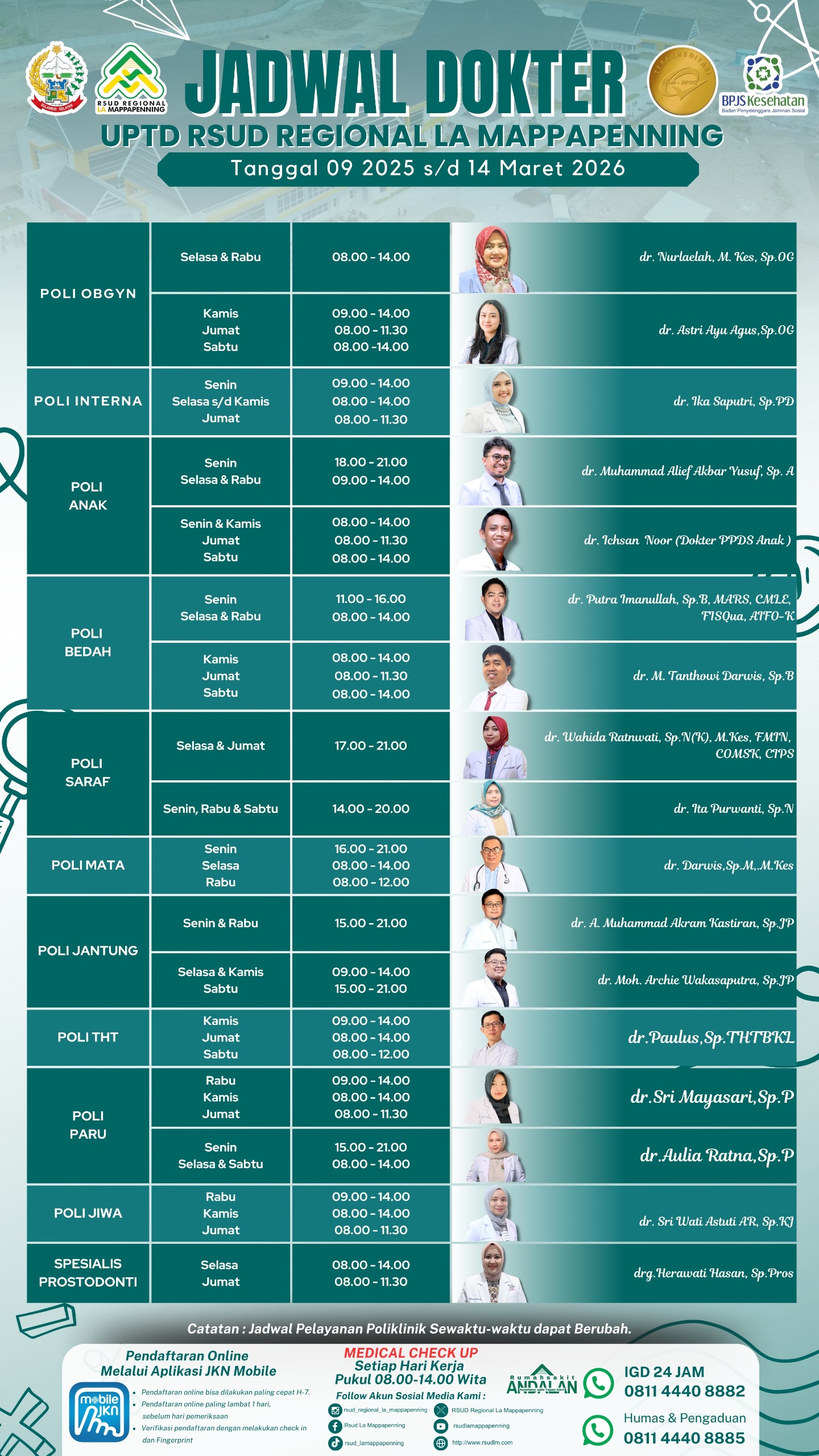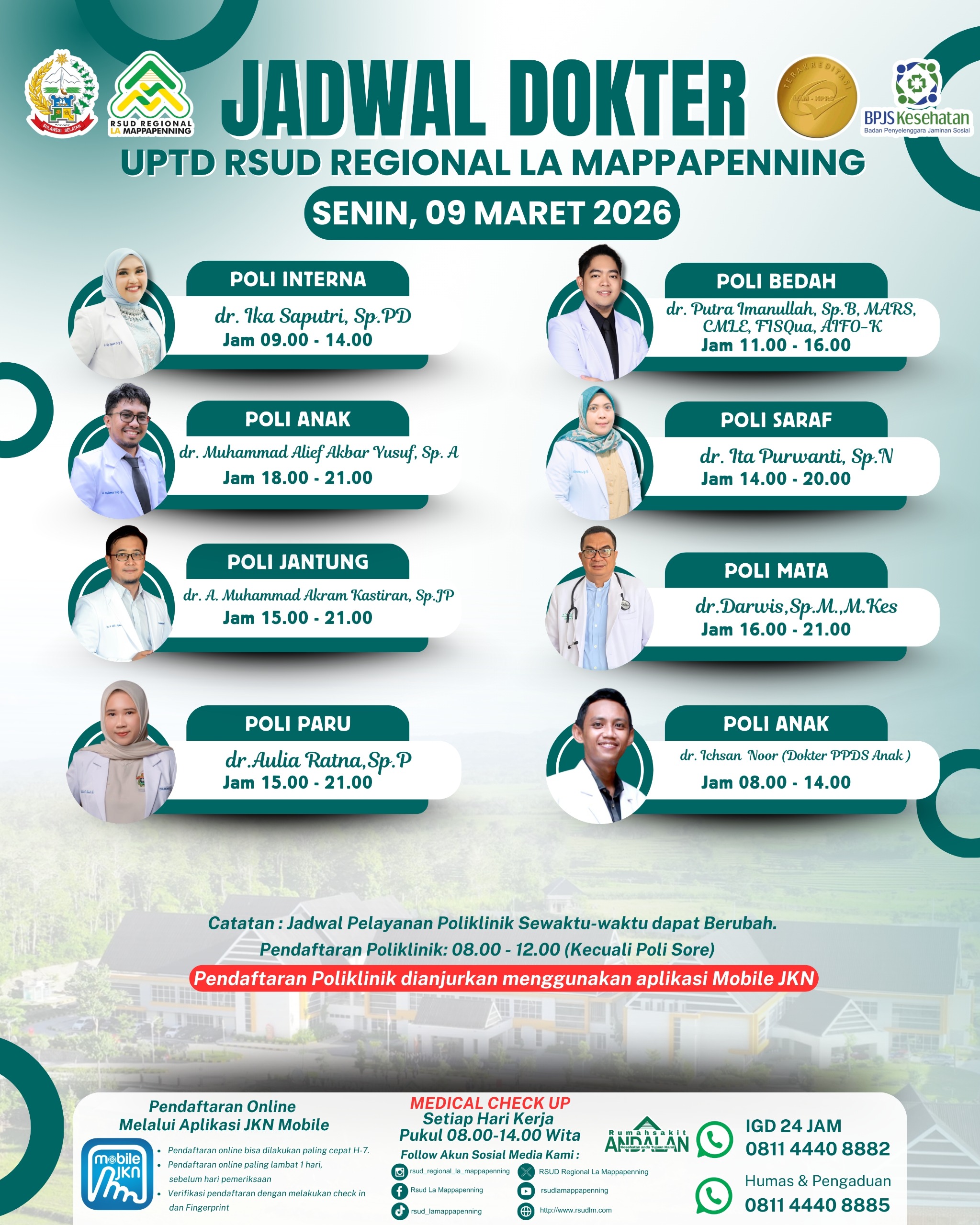Jadwal Poli Selasa 17 Maret 2026... |