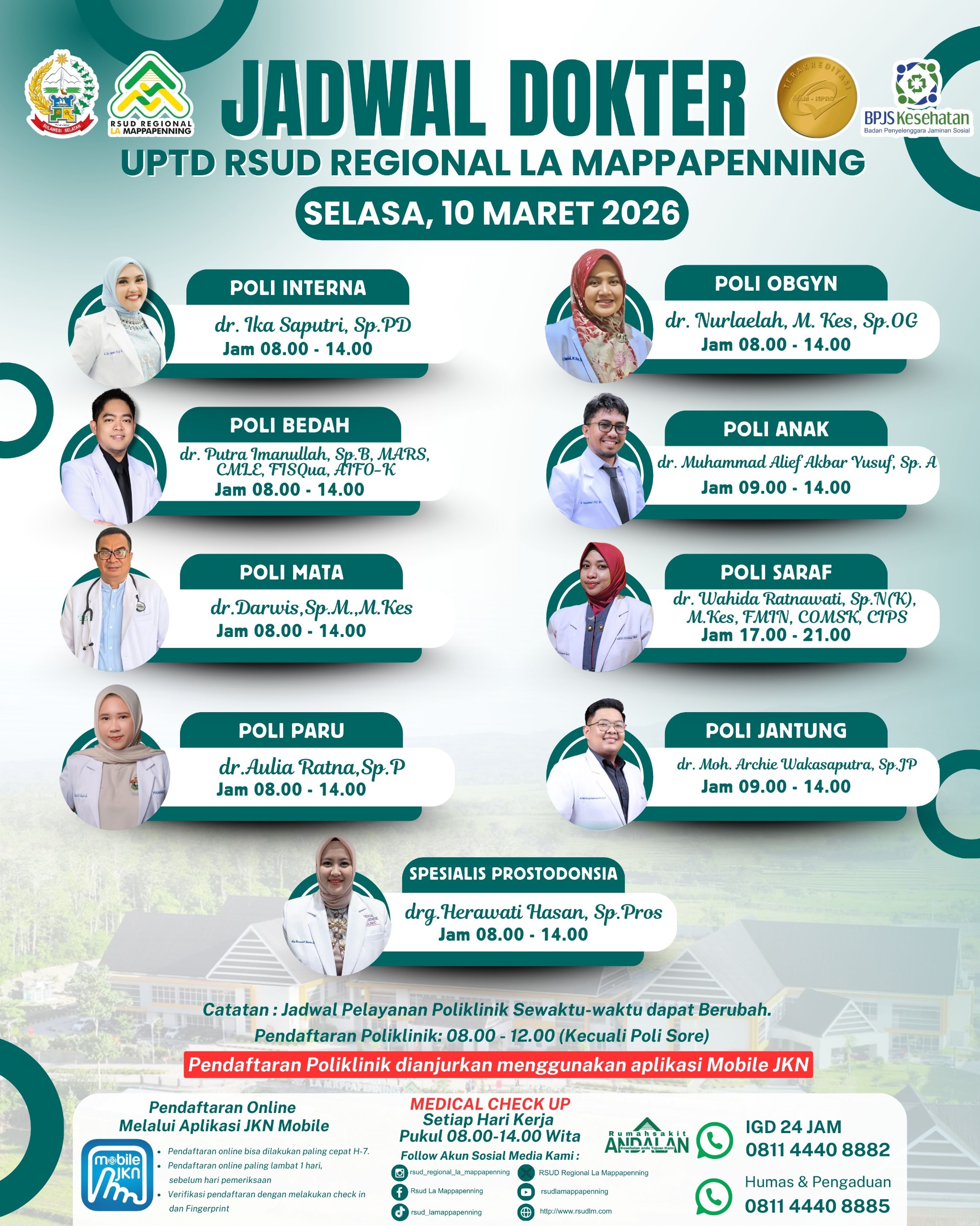 Jadwal Poli Selasa 10 Maret 2026... |
