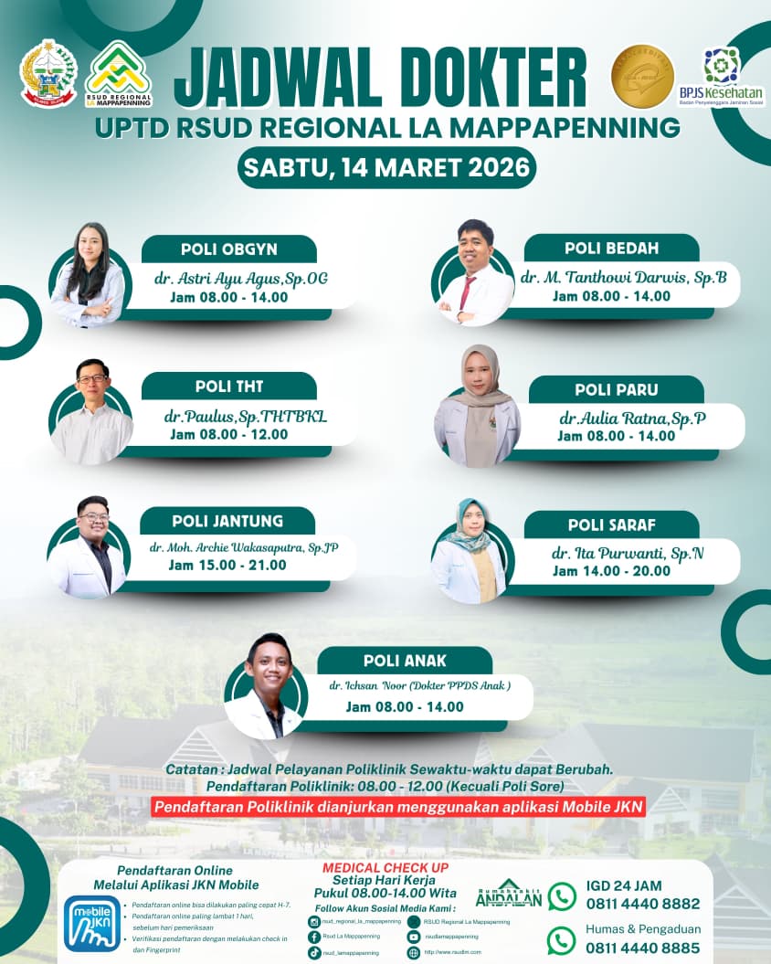 Jadwal Poli Sabtu 14 Maret 2026... |