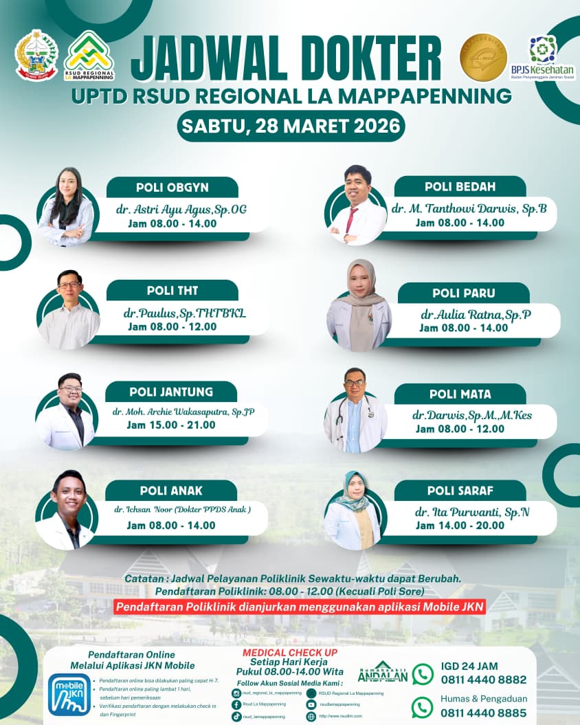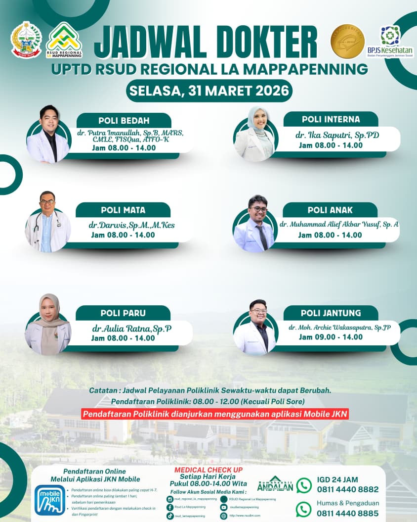 Jadwal Poli Selasa 31 Maret 2026... |