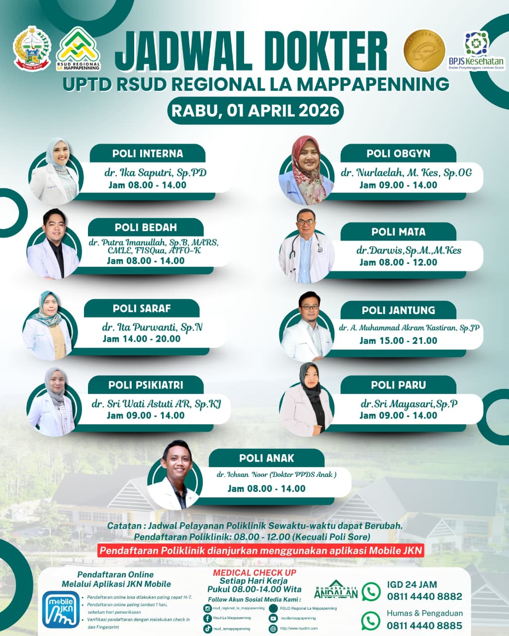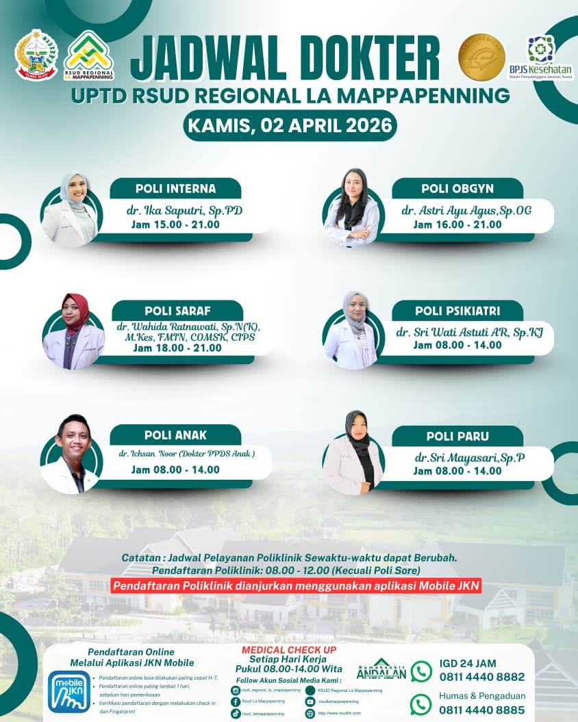 Jadwal Poli Rabu 01 April 2026... |