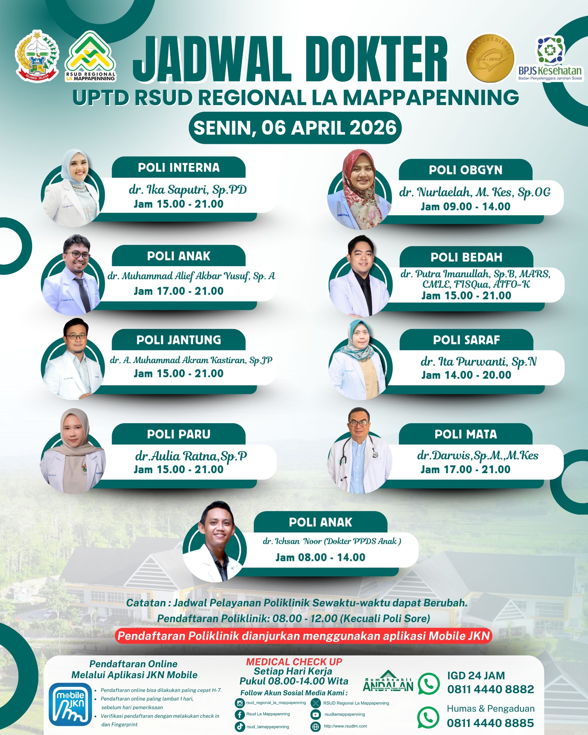 Jadwal Poli Senin 06 April 2026... |