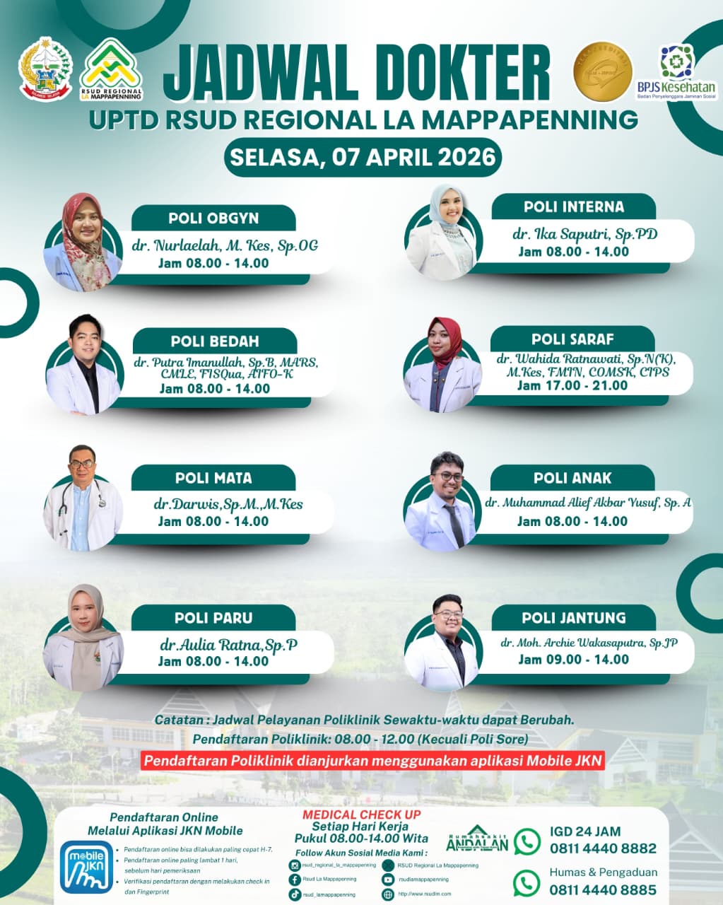 Jadwal Poli Selasa 07 April 2026... |
