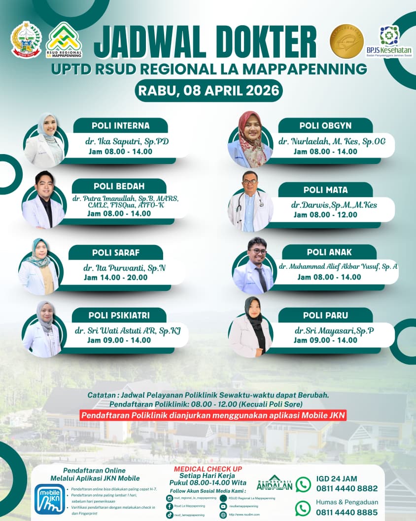 Jadwal Poli Rabu 08 April 2026... |