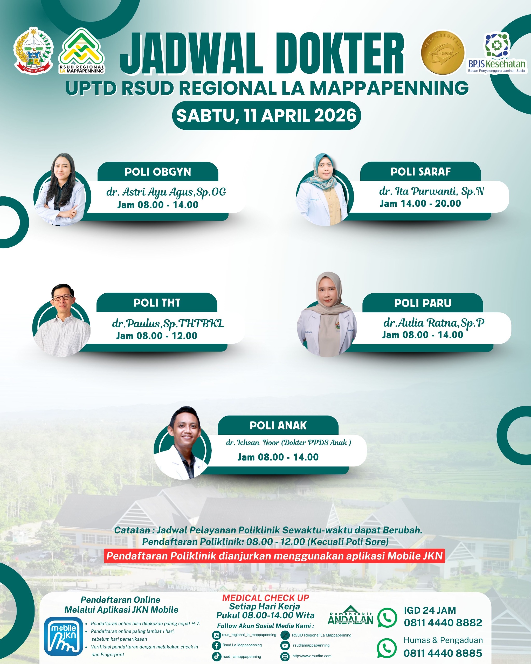 Jadwal Poli Sabtu 11 April 2026... |