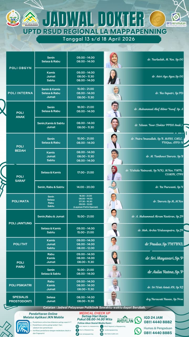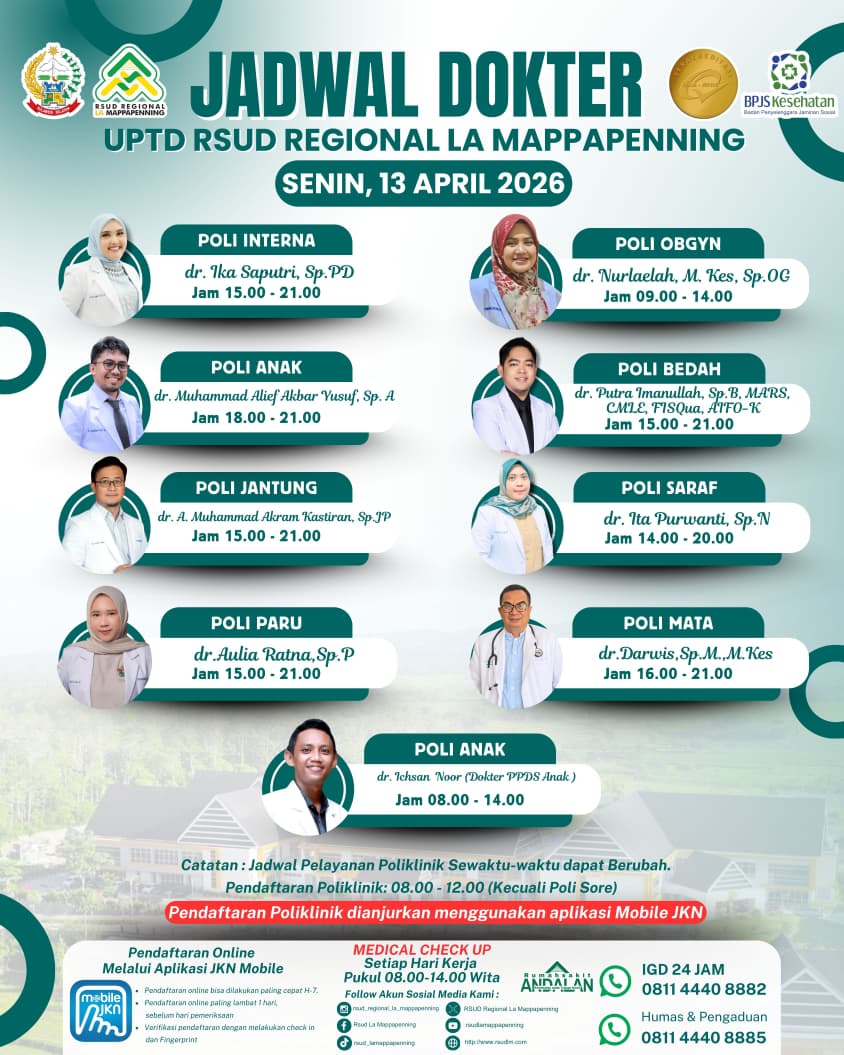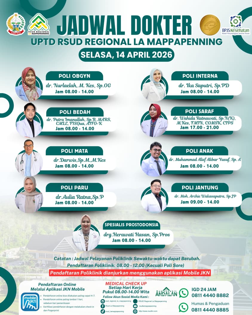 Jadwal Poli Selasa 14 April 2026... |