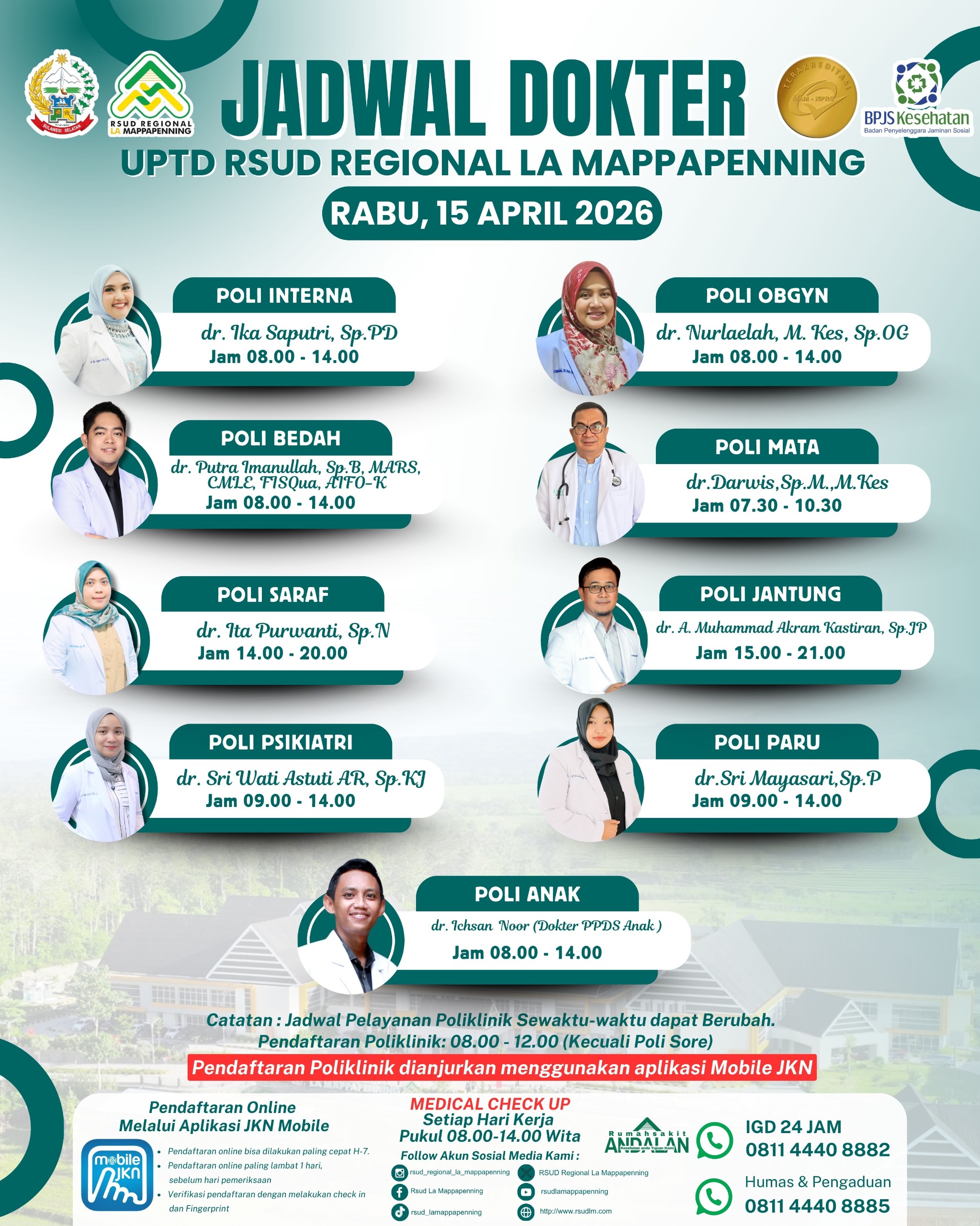 Jadwal Poli Rabu 15 April 2026... |