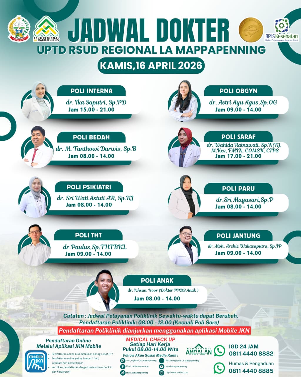 Jadwal Poli Kamis 16 April 2026... |