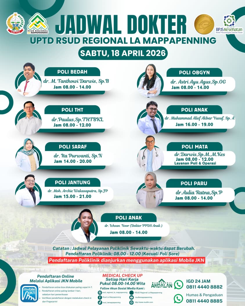 Jadwal Poli Sabtu 18 April 2026... |