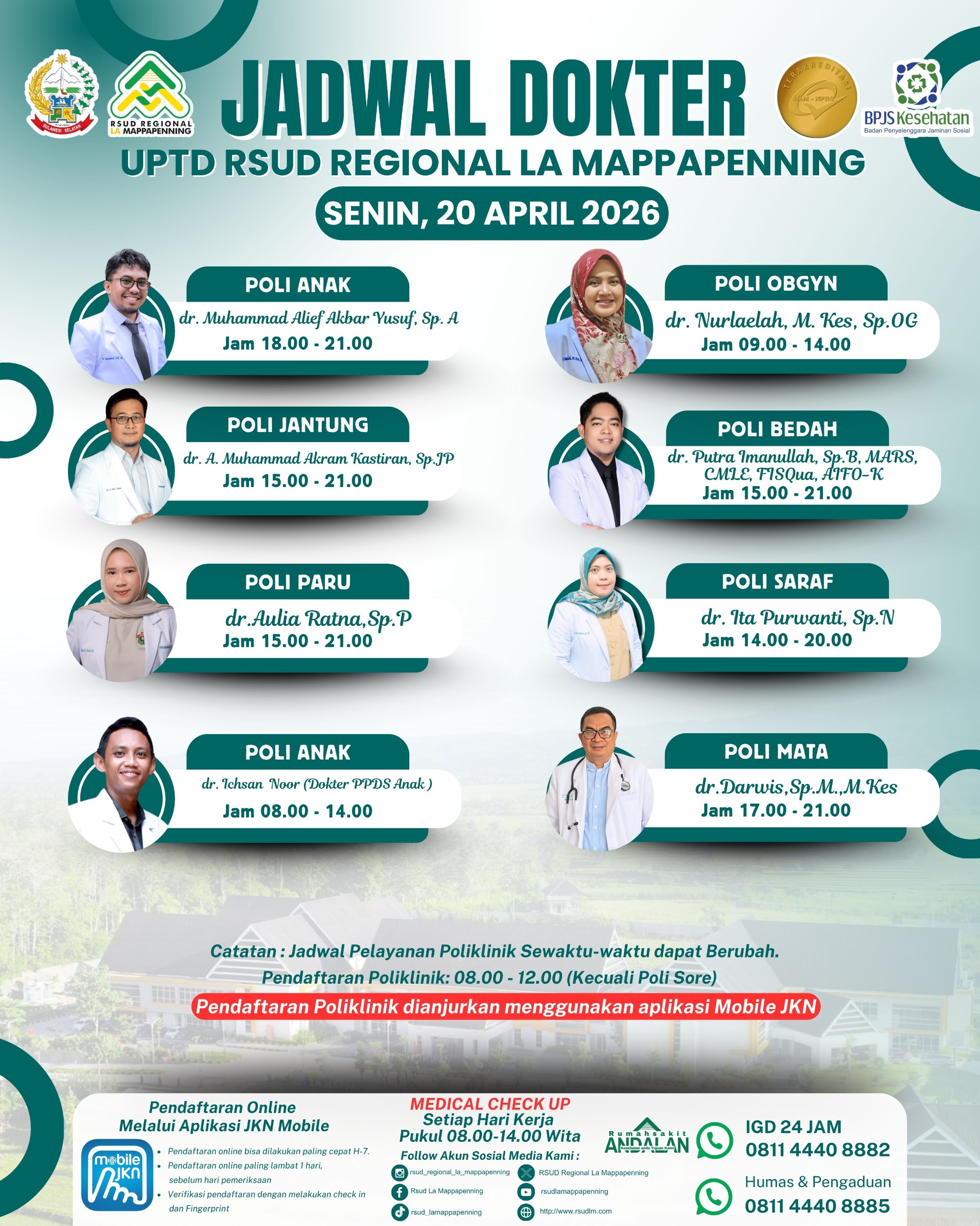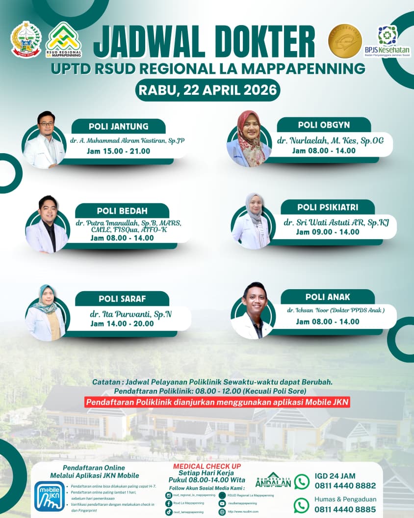 Jadwal Poli Rabu 22 April 2026... |