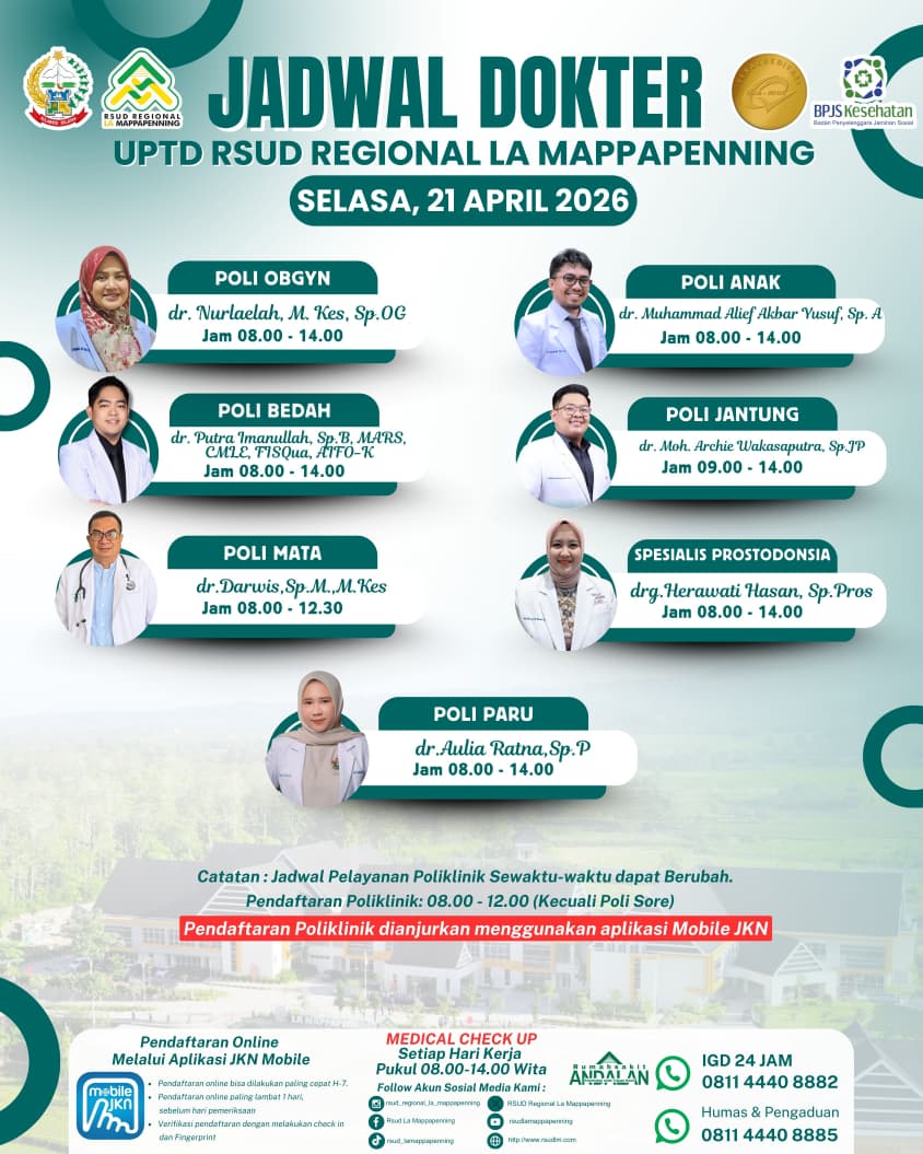 Jadwal Poli Selasa 21 April 2026... |