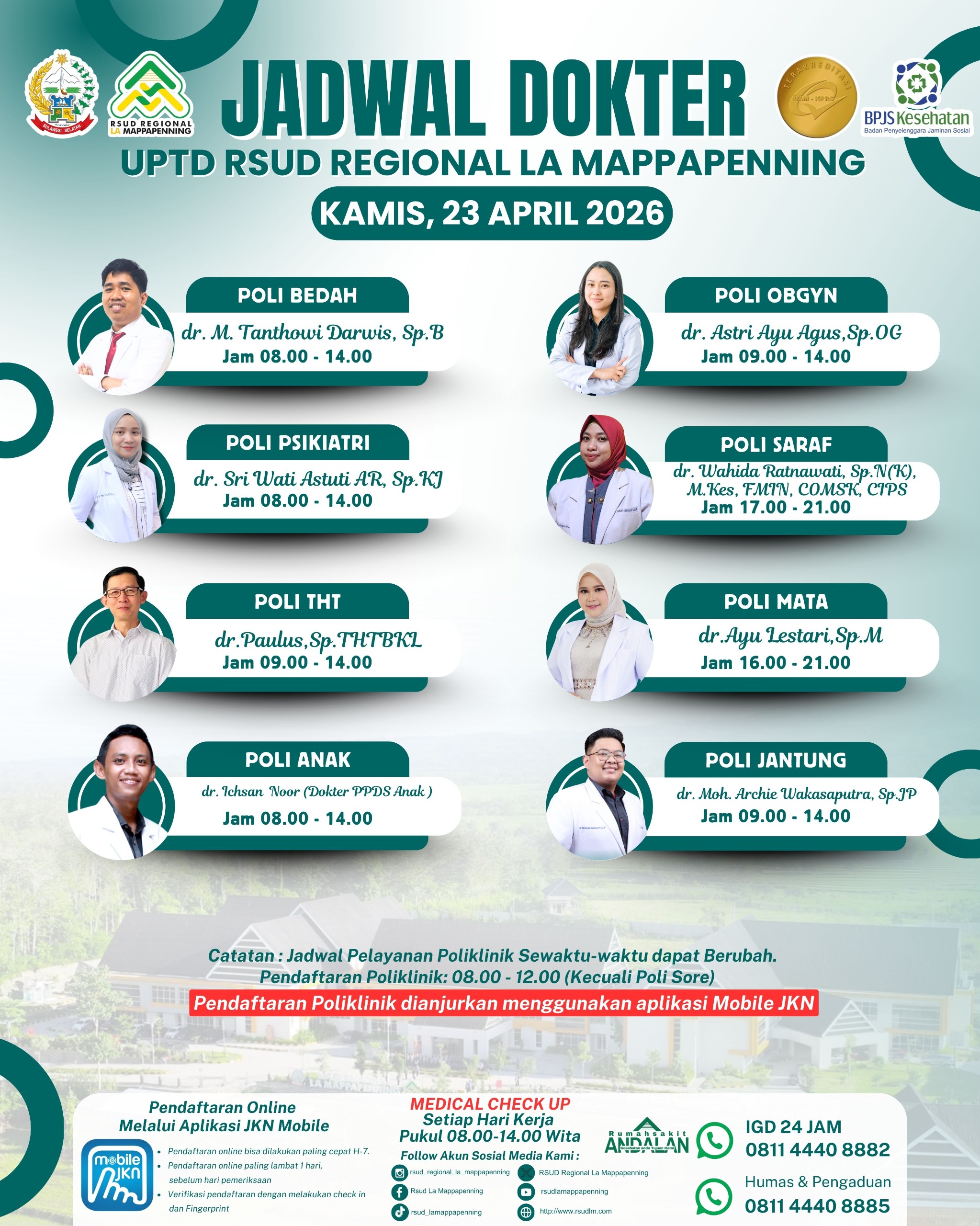 Jadwal Poli Kamis 23 April 2026... |